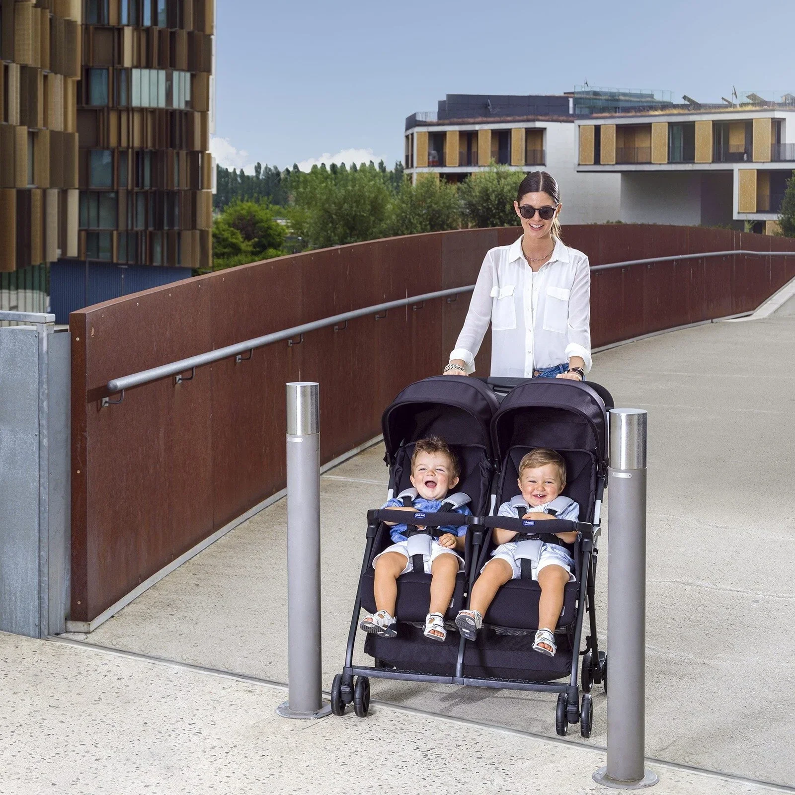 2 bebeği aynı anda taşıyabilmeniz için geliştirilen araba, ağırlık merkezini tam ortada bulundurduğu için uyguladığınız gücü en verimli şekilde kullanır. Böylelikle hem siz yorulmazsınız hem de bebekleriniz rahat bir gezme deneyimi yaşar.