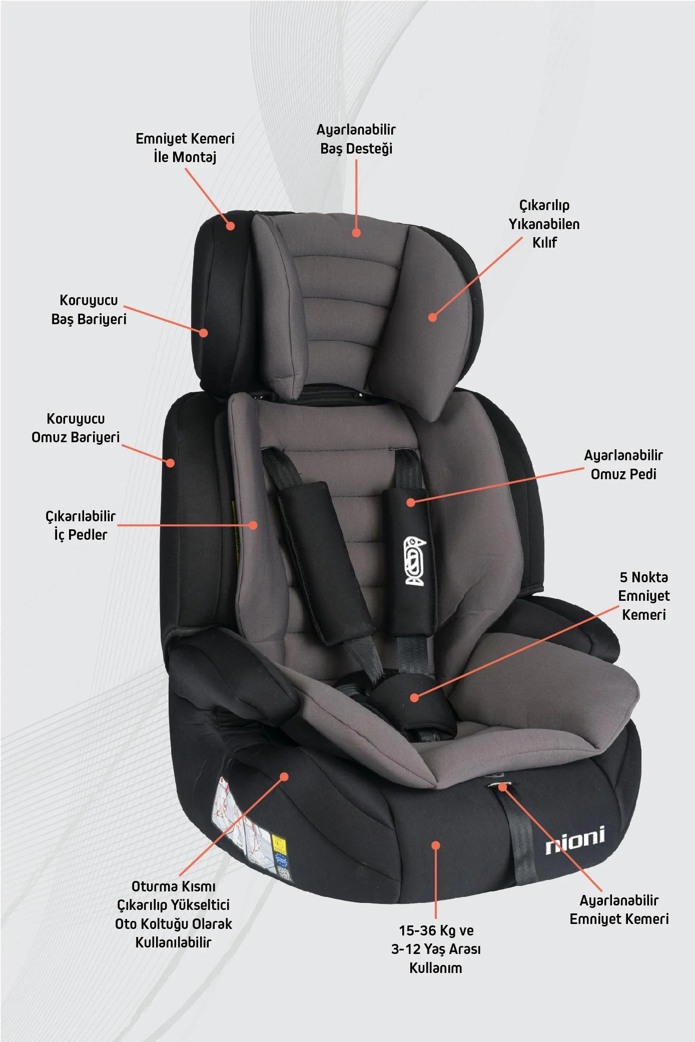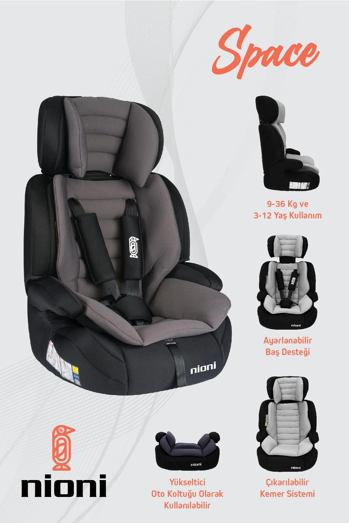 NİONİ SPACE GRİ 9-36 OTO KOLTUĞU